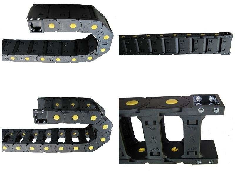 Rantai kabel PA66 ini unggul sebagai perangkat perlindungan untuk kawat, kabel, dan selang gas, sempurna 适配 (beradaptasi dengan) alat mesin CNC, pusat pemesinan, mesin otomatis, dan jalur produksi.Ini juga bekerja dengan lancar dengan robot, mesin transportasi, instrumen pengukuran, perangkat penanganan, dan sistem kontrol penggerak cairan lainnya.memberikan perlindungan keamanan yang dapat diandalkan dan panduan yang tepat untuk mencegah kerusakan eksternal pada kabel/selang internal. Selain perlindungan, ia memperpanjang umur layanan kabel, kabel, dan selang cair/gas (mengurangi biaya penggantian), menghilangkan distribusi kabel yang berantakan dan tidak teratur pada peralatan,dan mengatur komponen dengan rapi meningkatkan estetika keseluruhan mesin.